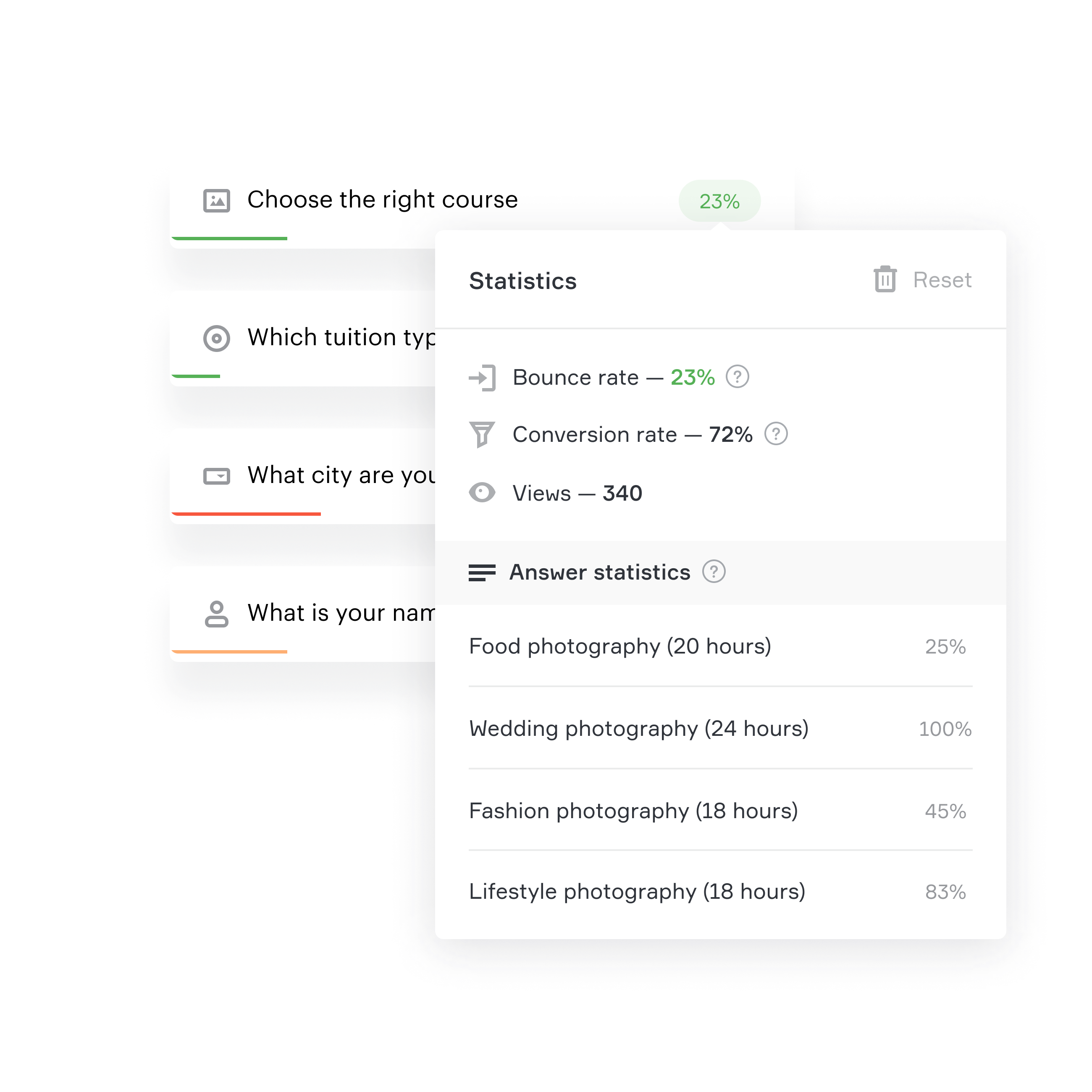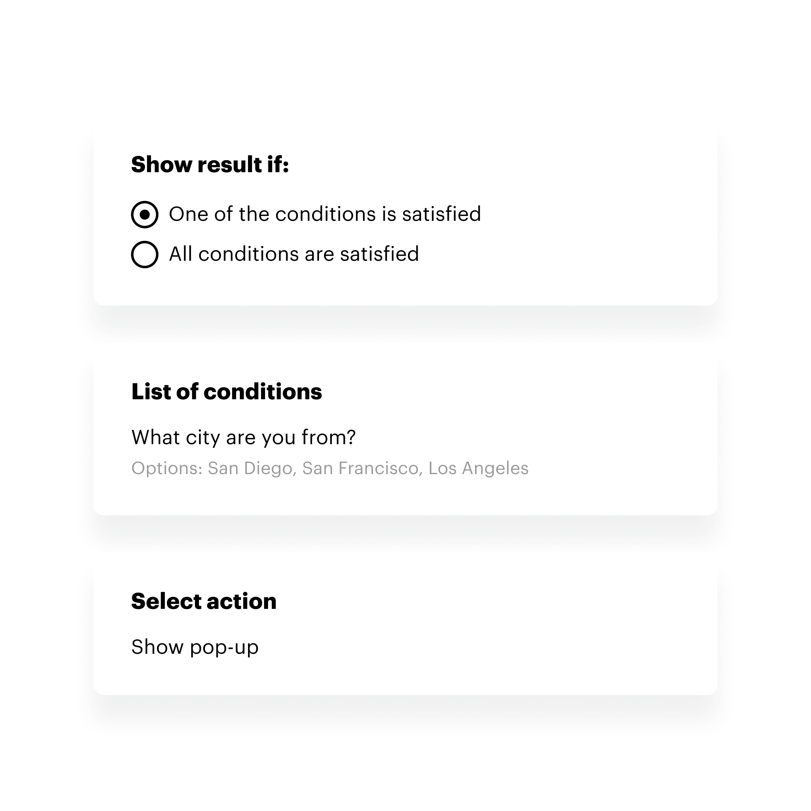 Személyre szabott kvízek minden látogatónak: Tegyél fel kérdéseket a megadott válaszok alapján. A látogatóknak nem kell irreleváns kérdésekre válaszolniuk, és te részletesebb információkat szerezhetsz.